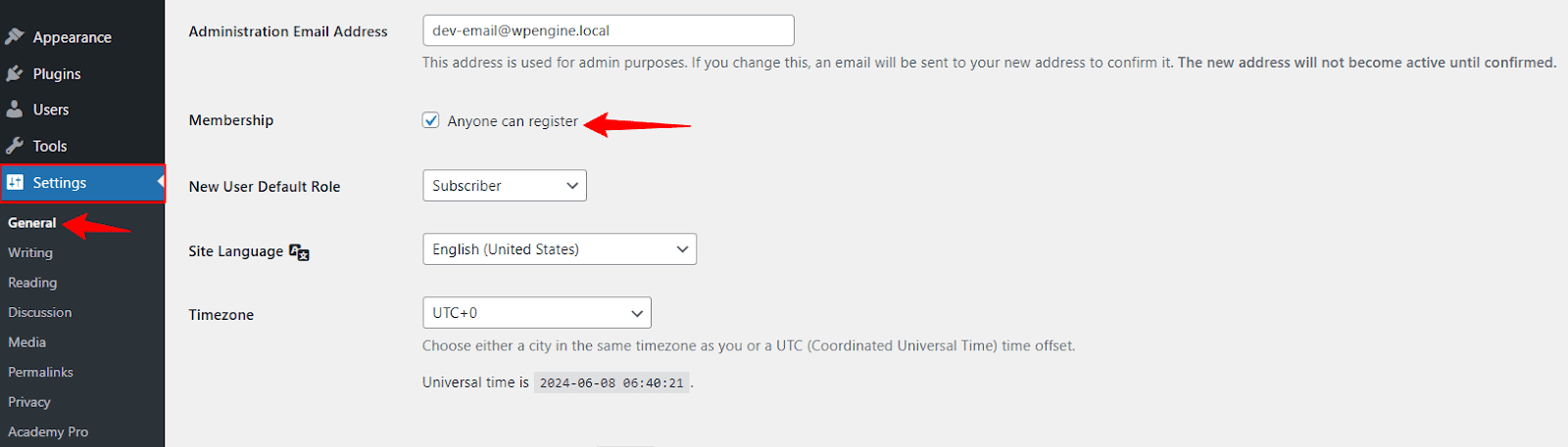 Now go to Settings > General and enable the Anyone can register option.