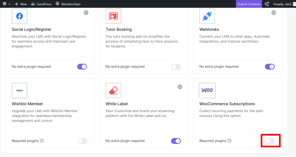 - Activate the WooCommerce Subscriptions add-on from Academy LMS > Add-ons.