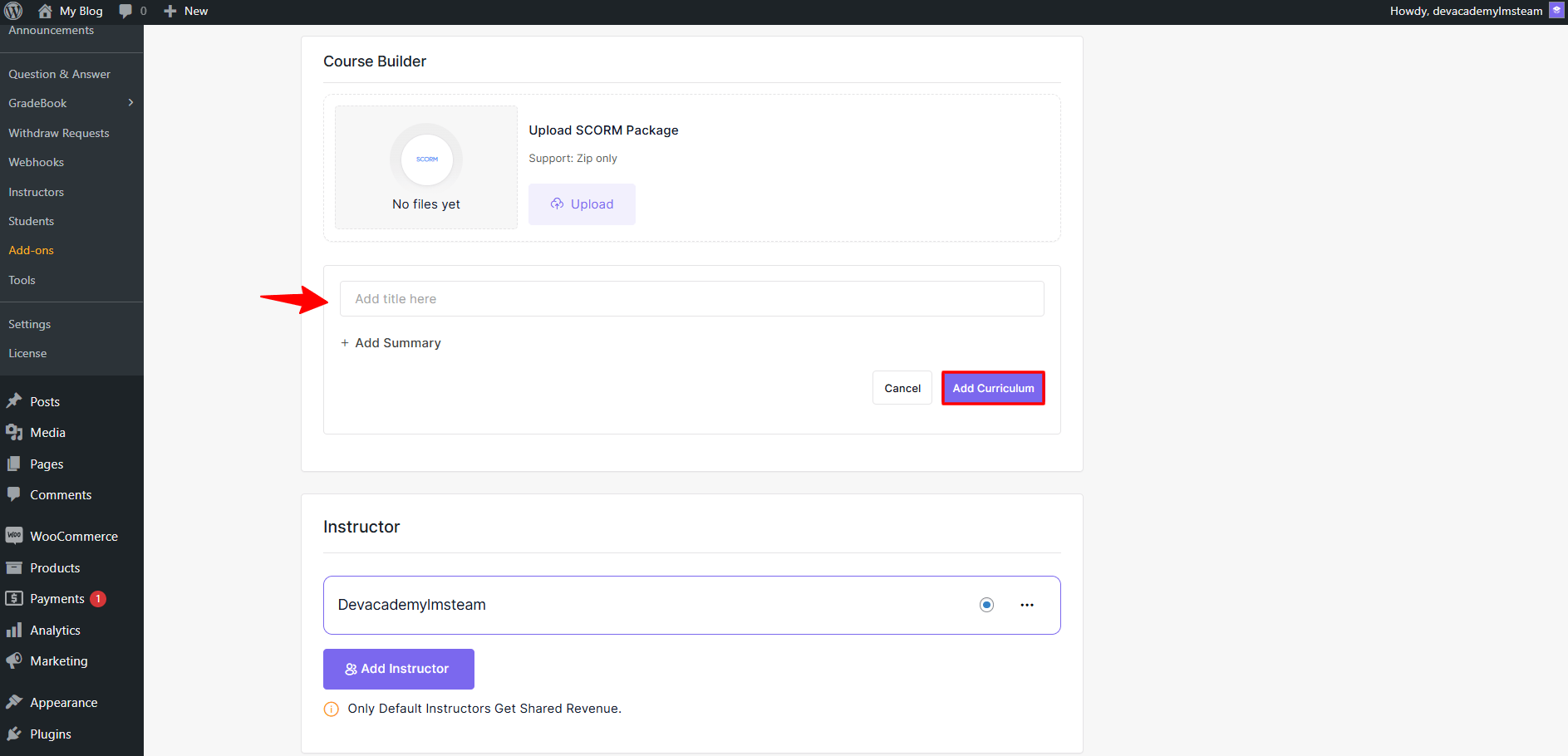 - Step 7. Click the Add Lesson button to finalize your lesson creation process. You can add your existing lessons for multiple curriculum. Simply click a course curriculum from course builder. Then click Add Add Content
