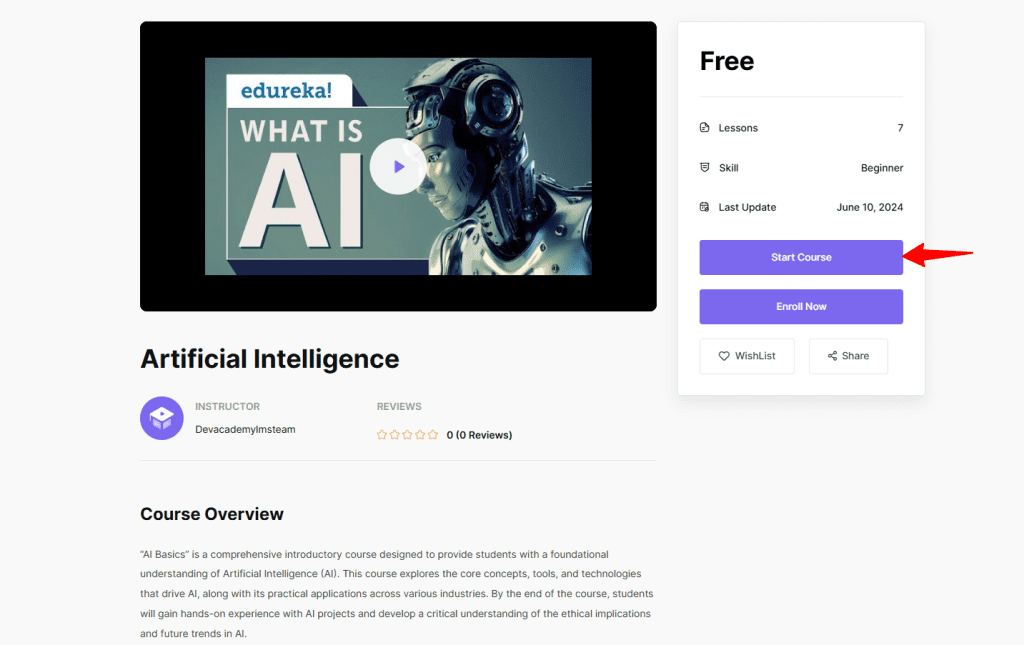 This is the overview of the course that you just created recently. Now click on Start Course.
