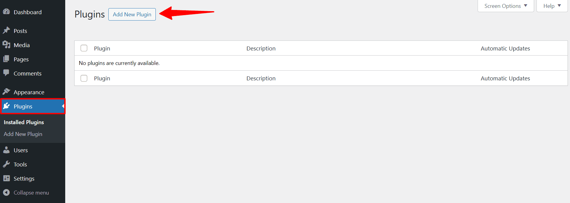 - After you’ve clicked the Plugin, the Add New option will appear under the plugin.