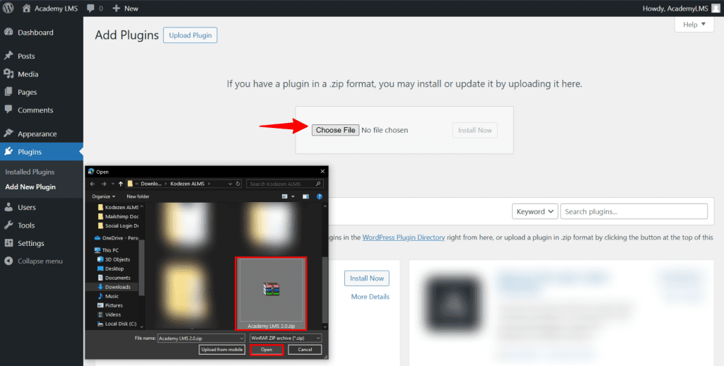 This process is also simple, where you need to download the zipped version of the Academy LMS plugin and then upload it to your site. Let’s learn the process in a step-by-step approach.