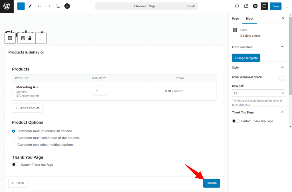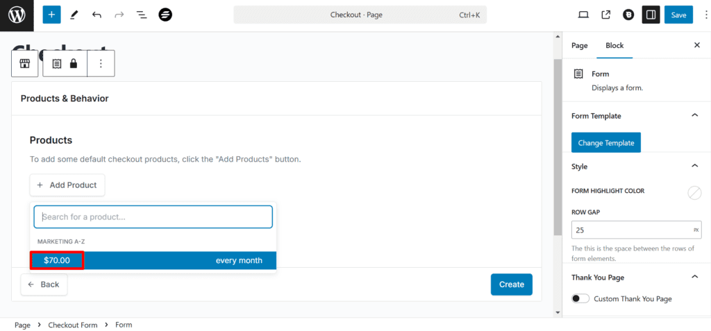 Choose a template for your checkout page and click Next. Now, click Add Product—your created product will appear here.