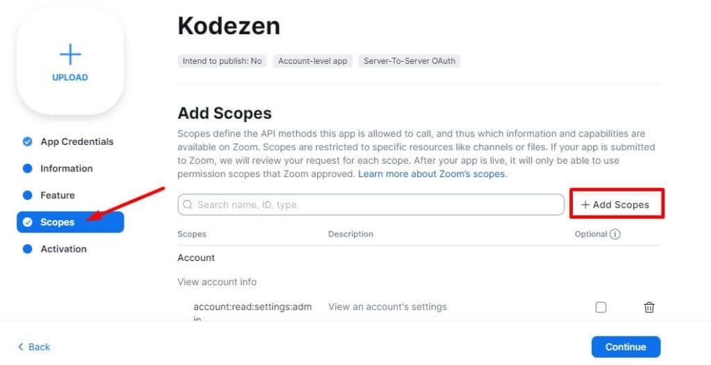 Now search all those given scopes one by one and add them all. Then follow the rest steps to activate Zoom with the Academy LMS.