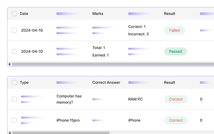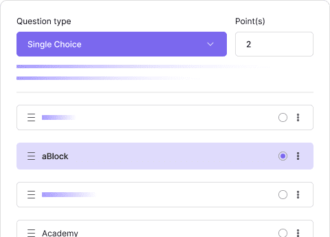 Academy LMS Quiz Builder lets you create engaging, interactive quizzes for students, from timed assessments to unlimited practice, ensuring effective knowledge evaluation and a powerful learning experience.